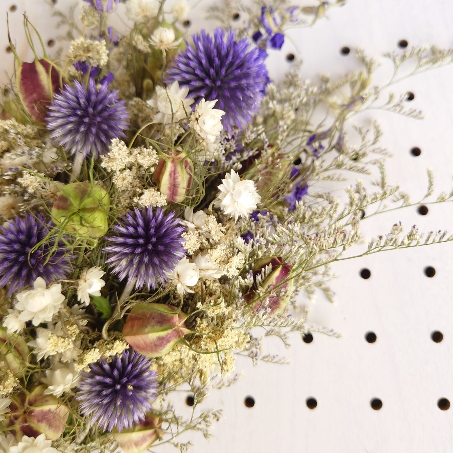 ドライフラワーは、時間の経過と共に少しずつ色や質感が変化し、味わいを増していきます。また、ドライフラワーはとてもデリケートで、花びらや葉が崩れやすいのも特徴です。取扱いには十分ご注意下さい。