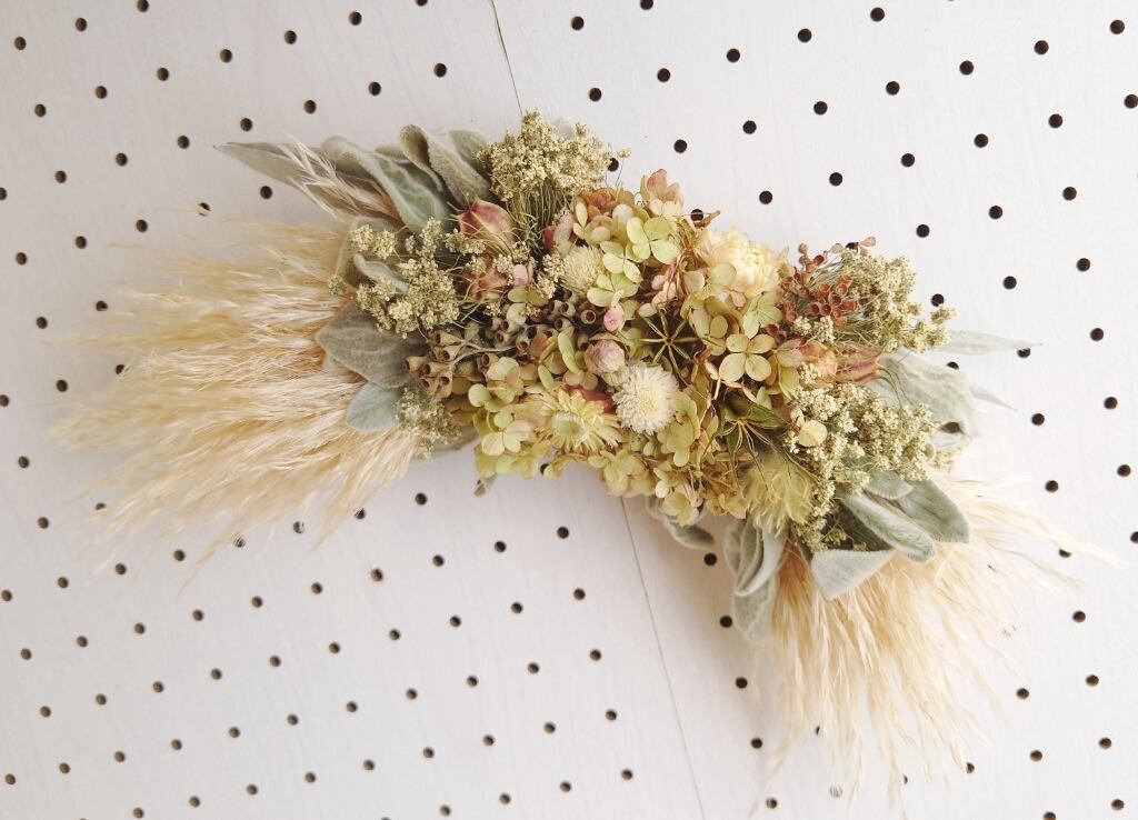 パンパスグラスとピラミッドアジサイのナチュラルな色合いのハーフリース。