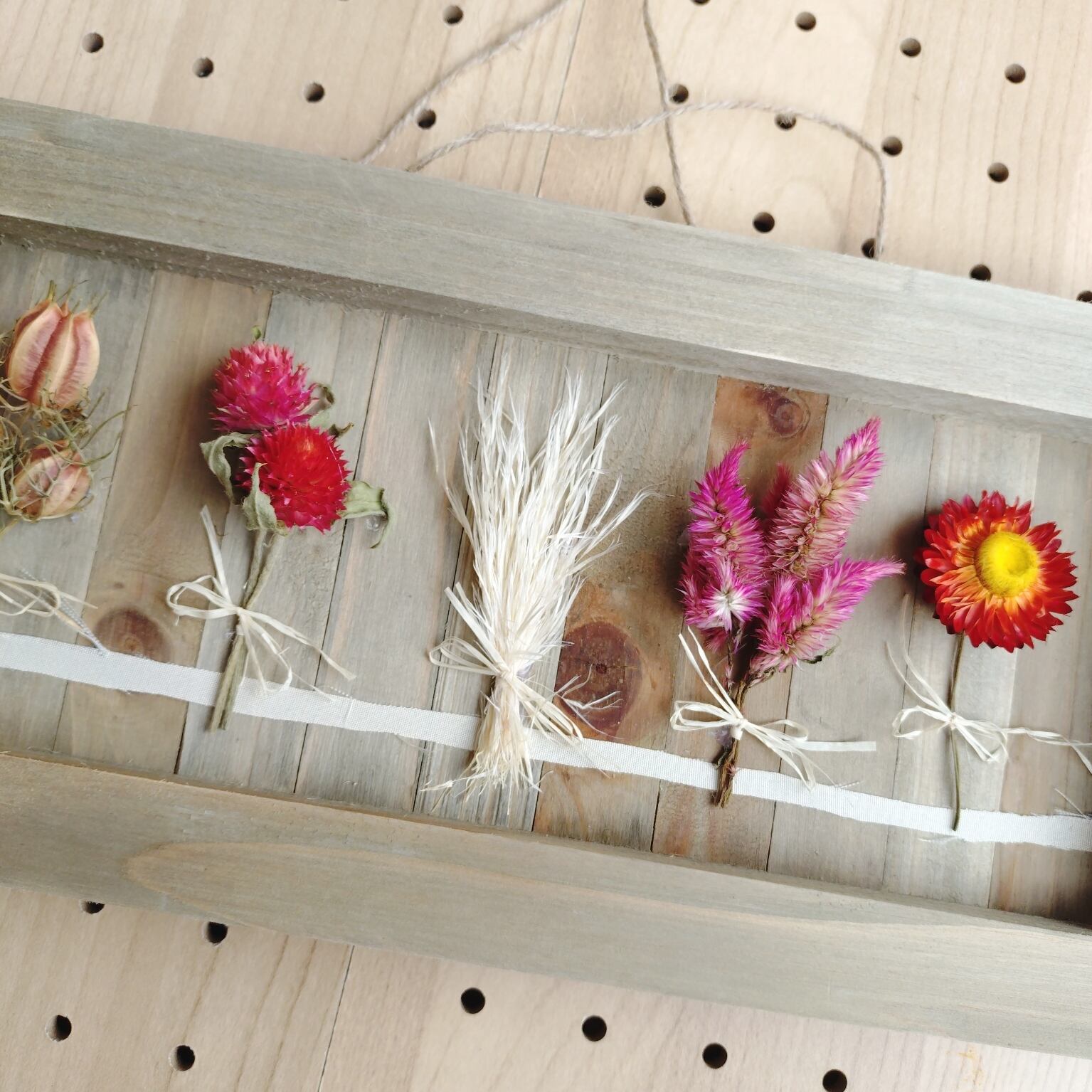 ヘリクリサム、センニチコウ、ケイトウ、パンパスグラス、ニゲラ