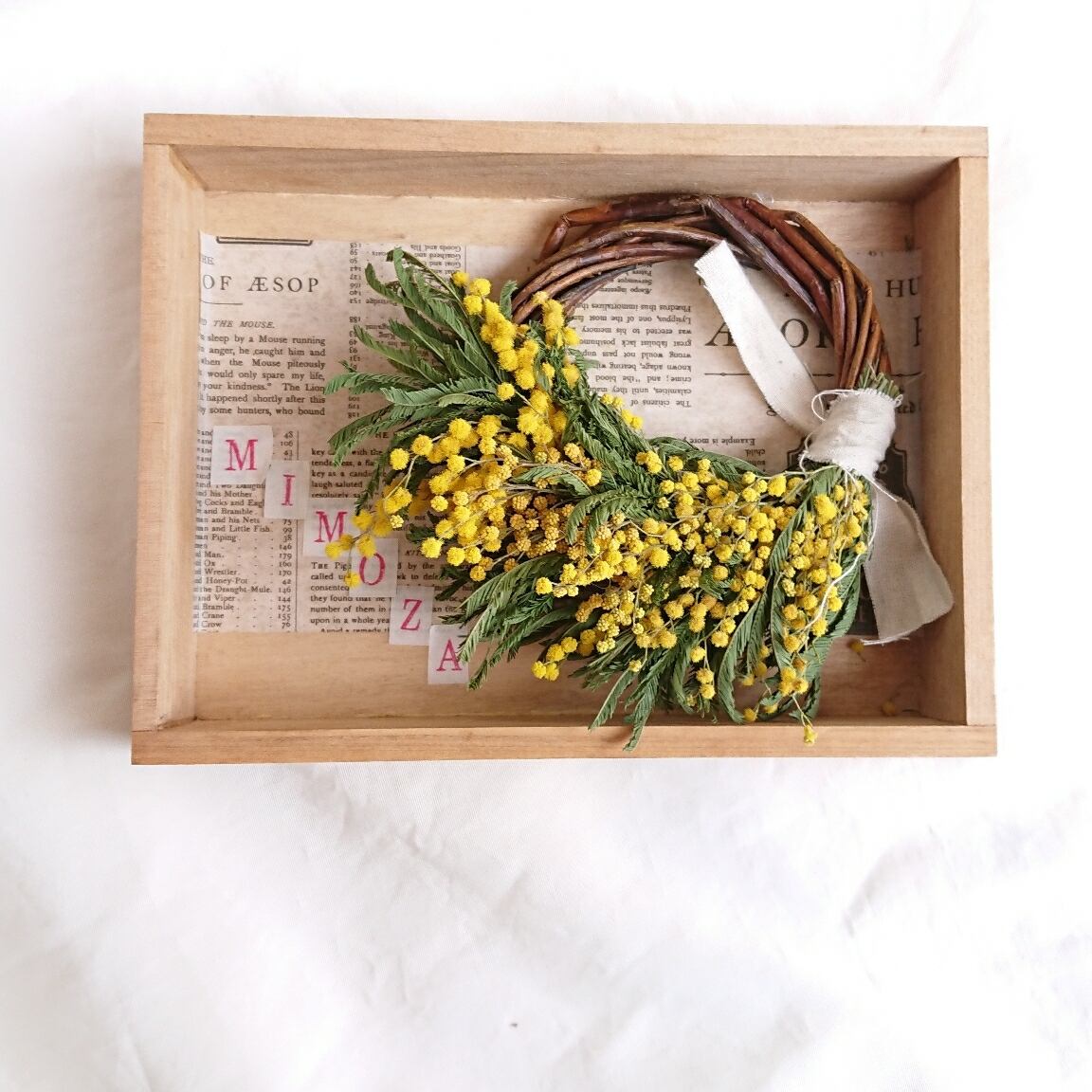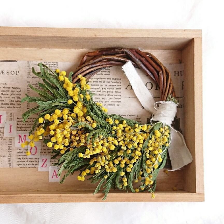 ミモザのハーフリースボックスアレンジ。