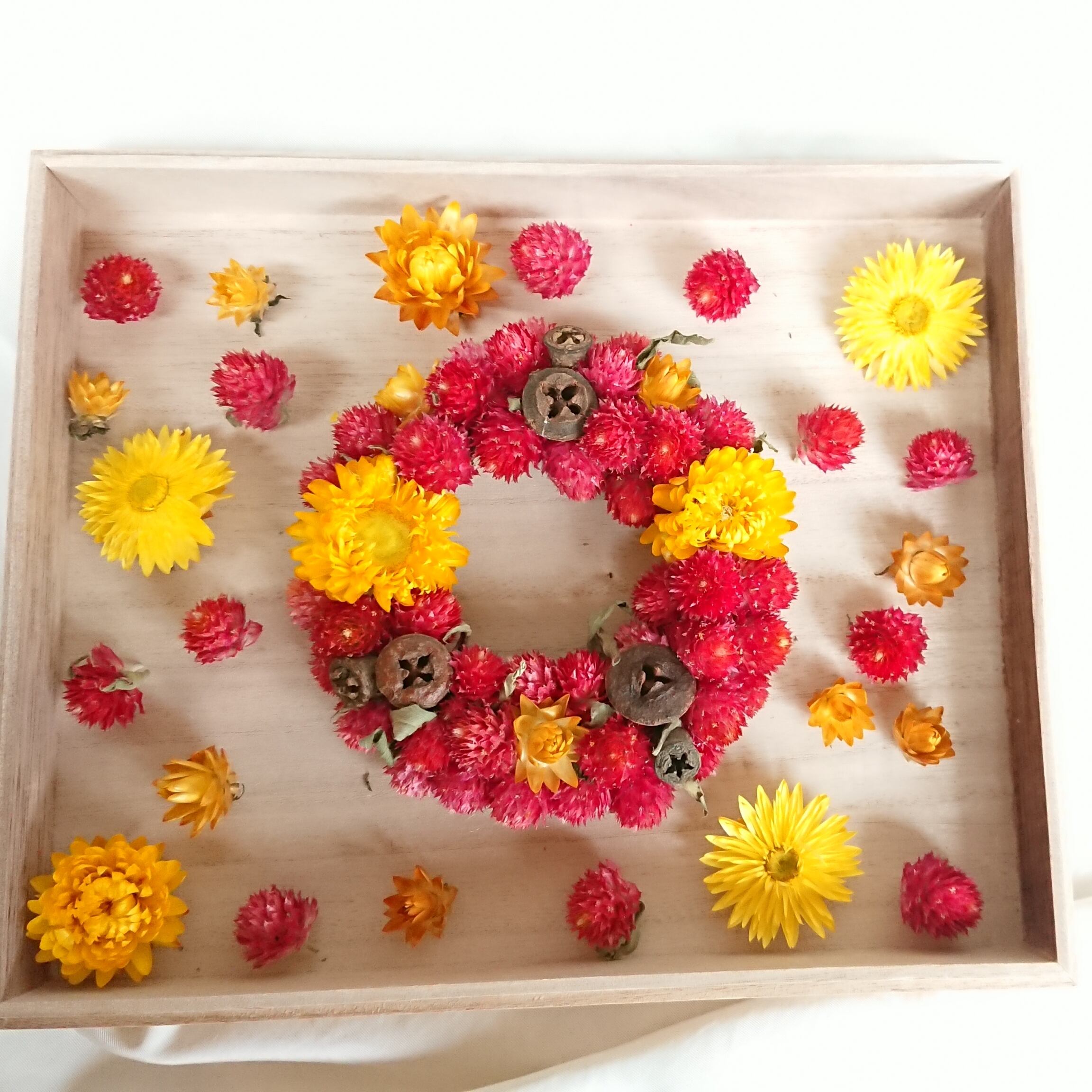 ドライフラワーは、時間の経過と共に少しずつ色や質感が変化し、味わいを増していきます。また、ドライフラワーはとてもデリケートで、花びらや葉が崩れやすいのも特徴です。取扱いには十分ご注意下さい。