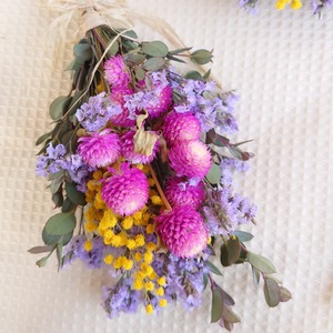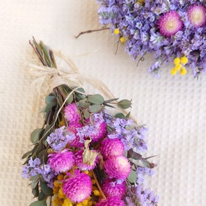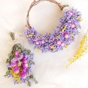 ドライフラワーは、時間の経過と共に少しずつ色や質感が変化し、味わいを増していきます。また、ドライフラワーはとてもデリケートで、花びらや葉が崩れやすいのも特徴です。取扱いには十分ご注意下さい。